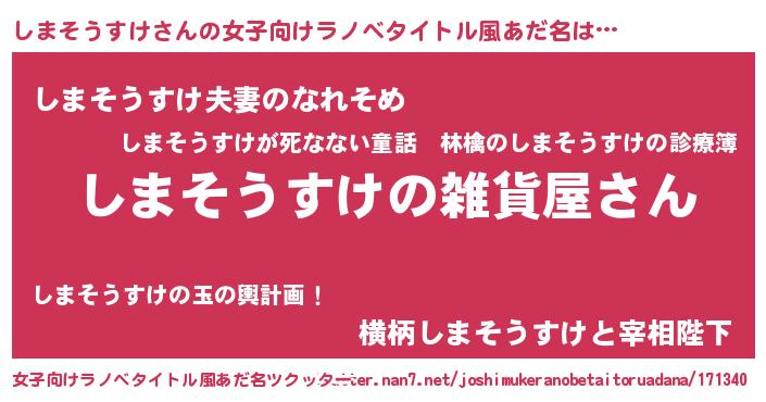 | 男性向けラノベタイトル風あだ名 | 『やはりしまそうすけの青春ラブコメはまちがっている 』 |