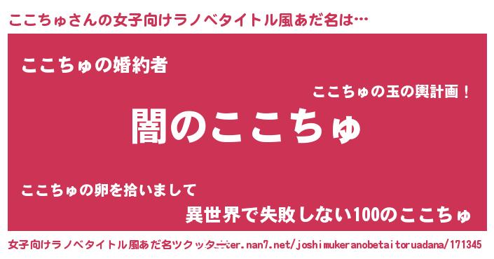| 男性向けラノベタイトル風あだ名 | 『Re:ここちゅから始める異世界生活』 |