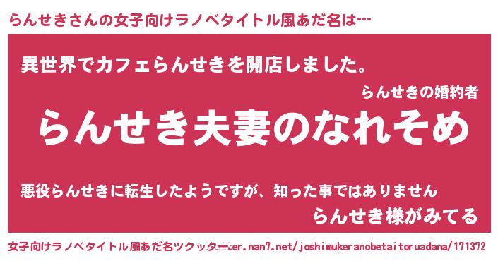 | ヘコむあだ名 | 『らんせき(小並感)』『らんを』 |