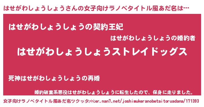 | ヘコむあだ名 | 『はせがわしょうしょう(笑)』『なまこ酢』 |
