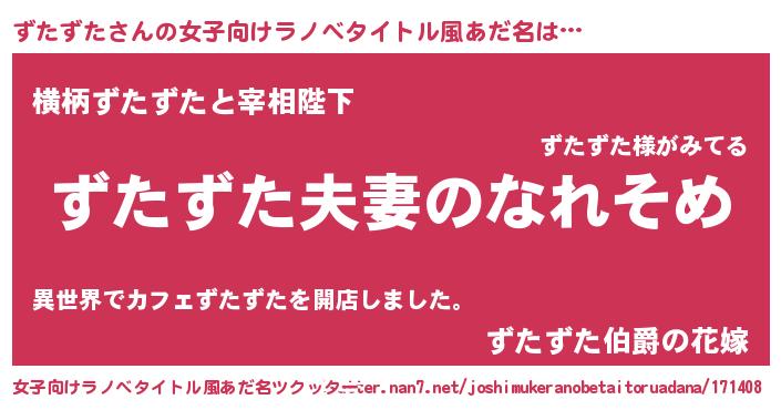 | ヒーロー風カッコイイあだ名 | 『正義の使者ずたずた』『魔戒騎士ズタ』 |