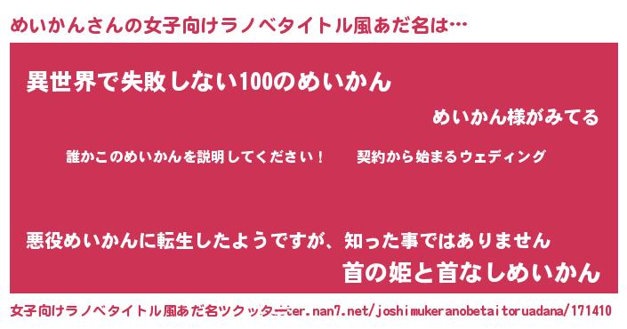 | ヘコむあだ名 | 『めいもー』『めいかん(小並感)』 |