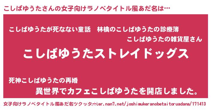 | 男性向けラノベタイトル風あだ名 | 『Re:こしばゆうたから始める異世界生活』 |