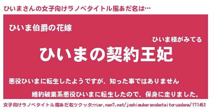 | 胡散臭い通販商品みたいなあだ名 | 『来世でも幸せになれる健康食品…その名も「ひいま」』 |