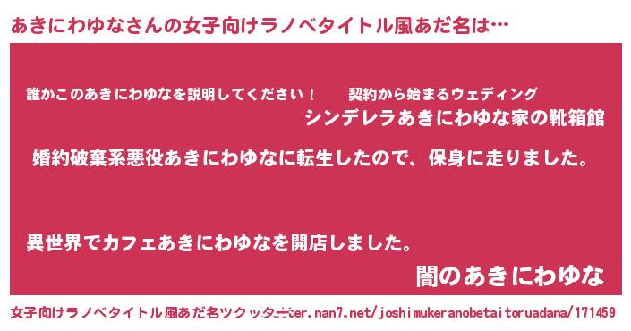 | 男性向けラノベタイトル風あだ名 | 『転生したらあきにわゆなだった件』 |