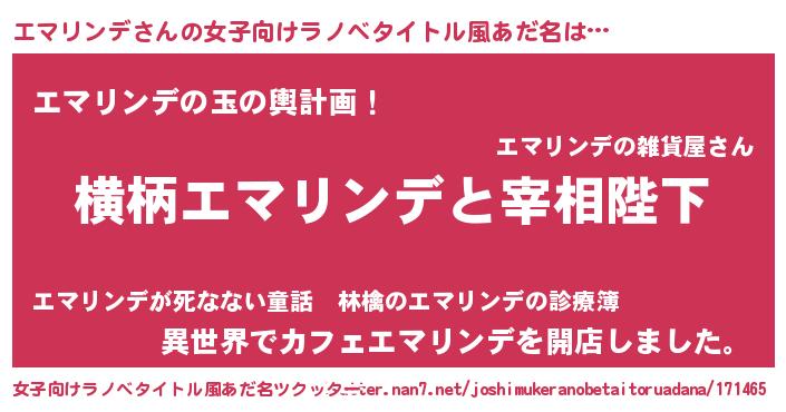 | 男性向けラノベタイトル風あだ名 | 『エマリンデに滅ぼされるだけの簡単なお仕事です』 |