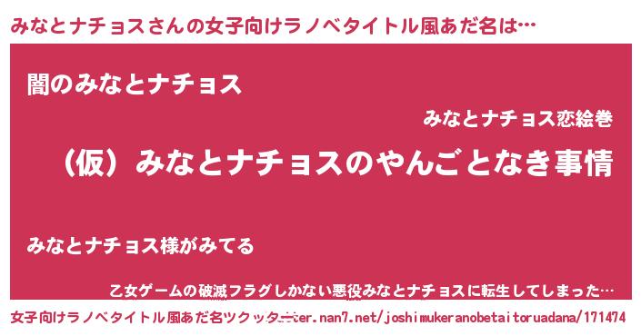 | ポケモン風あだ名 | 『ミナチュウ』『ミナセウス』 |