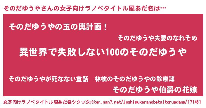 | ヘコむあだ名 | 『そのだゆうや(小並感)』『酢こんぶ』 |