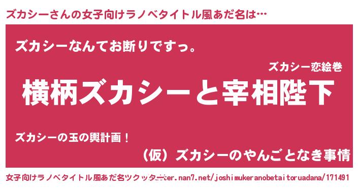 | 男性向けラノベタイトル風あだ名 | 『ズカシーに滅ぼされるだけの簡単なお仕事です』 |
