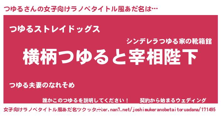 | 男性向けラノベタイトル風あだ名 | 『つゆるに滅ぼされるだけの簡単なお仕事です』 |