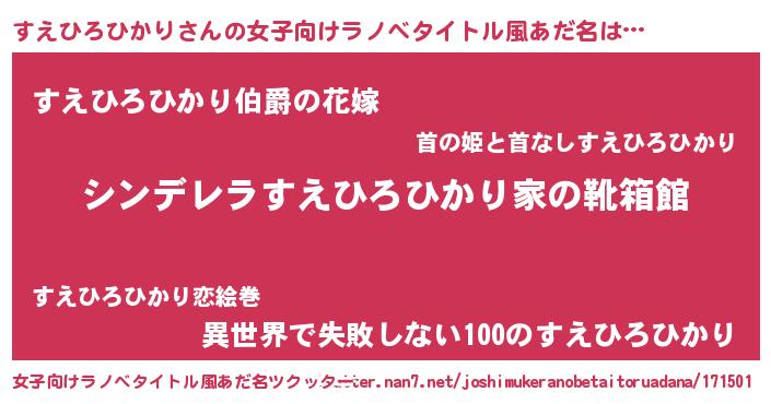 | 男性向けラノベタイトル風あだ名 | 『冴えないすえひろひかりの育てかた』 |