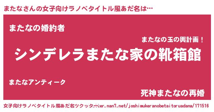 | 男性向けラノベタイトル風あだ名 | 『冴えないまたなの育てかた』 |