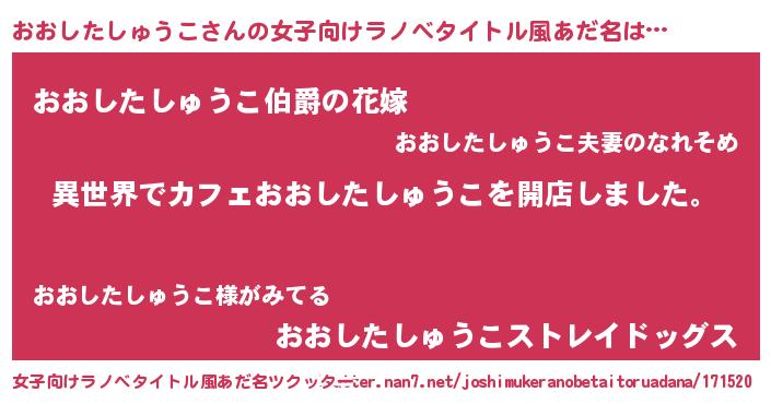 | 意味不明あだ名 | 『永久保存おおしたしゅうこ』 |