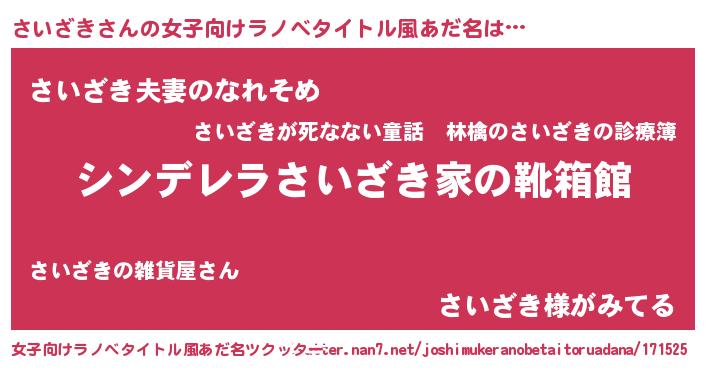 | 男性向けラノベタイトル風あだ名 | 『緋弾のサイザキ』『魔弾の王とさいざき』 |