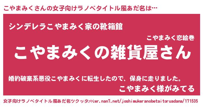 | 男性向けラノベタイトル風あだ名 | 『やはりこやまみくの青春ラブコメはまちがっている 』 |