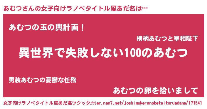 | 男性向けラノベタイトル風あだ名 | 『あむつという概念が存在しない退屈な世界 』 |