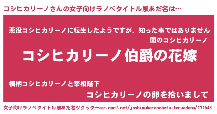 | 意味不明あだ名 | 『コシヒカリーノフォーエバー』 |