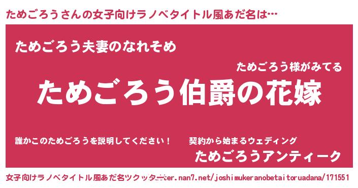 | 意味不明あだ名 | 『ためごろうフォーエバー』 |