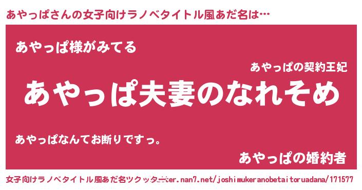 | ヒーロー風カッコイイあだ名 | 『正義の使者あやっぱ』『幻影騎士アヤ』 |