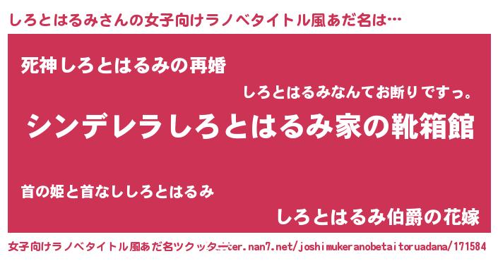 | 胡散臭い通販商品みたいなあだ名 | 『100人中100人が認めたマグネット磁石…その名も「しろとはるみ」』 |