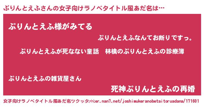 | 料理風あだ名 | 『ぷりんとえふのカルパッチョ風』 |