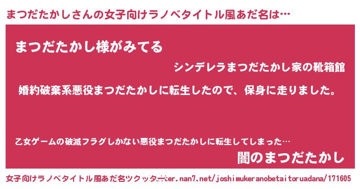 | 男性向けラノベタイトル風あだ名 | 『マツダタカシスレイヤー』 |