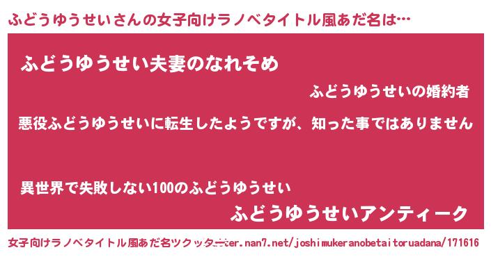 | ヒーロー風カッコイイあだ名 | 『仮面フドダー』『ネオフドウユウセイ』 |