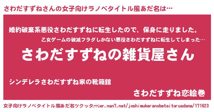 | 男性向けラノベタイトル風あだ名 | 『やはりさわだすずねの青春ラブコメはまちがっている 』 |