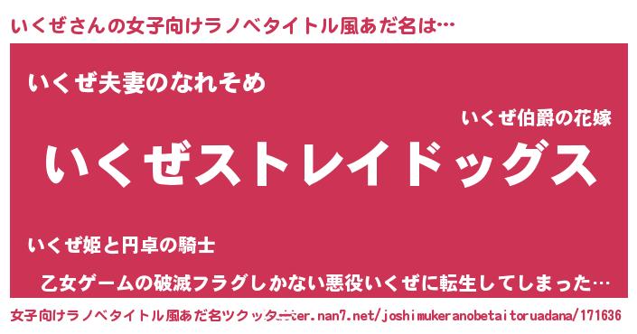 | ヒーロー風カッコイイあだ名 | 『究極戦士イクゼ』『慈愛の使者いくぜ』 |