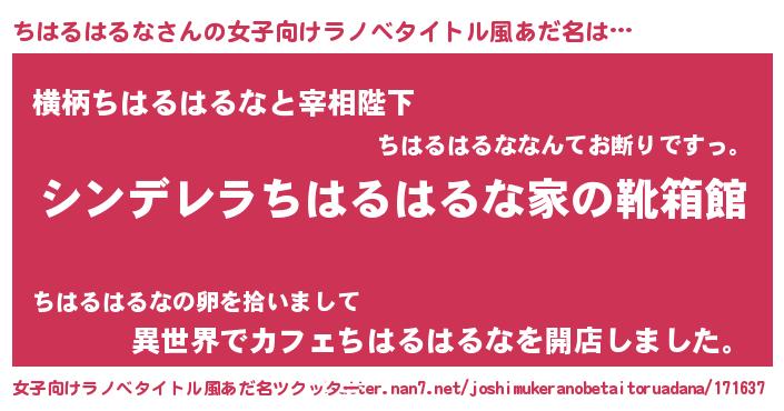 | 男性向けラノベタイトル風あだ名 | 『緋弾のチハルハルナ』 |