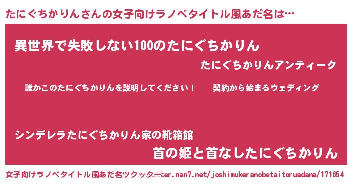 | ヒーロー風カッコイイあだ名 | 『スーパータニグチカリン』 |