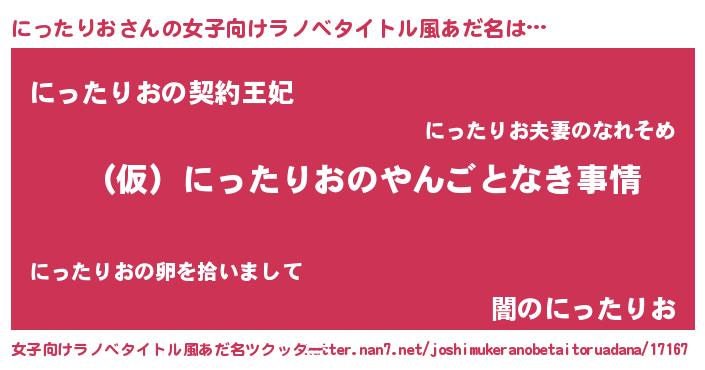 | 男性向けラノベタイトル風あだ名 | 『にったりおの憂鬱』 |