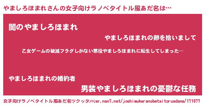 | 男性向けラノベタイトル風あだ名 | 『この素晴らしい世界にやましろほまれを!』 |