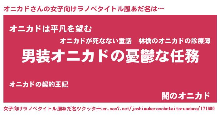 | 男性向けラノベタイトル風あだ名 | 『冴えないオニカドの育てかた』 |