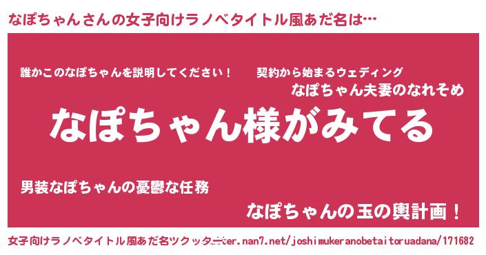 | 男性向けラノベタイトル風あだ名 | 『なぽちゃんの嫁は女の子じゃないと思った?』 |