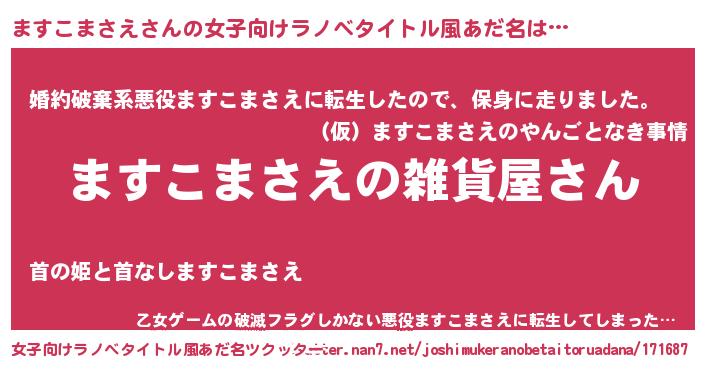 | 男性向けラノベタイトル風あだ名 | 『やはりますこまさえの青春ラブコメはまちがっている 』 |