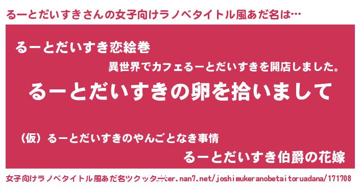 | 意味不明あだ名 | 『とにかく怪しいるーとだいすき』 |