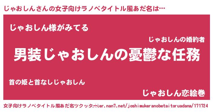 | 男性向けラノベタイトル風あだ名 | 『うちのじゃおしんが世界を掌握している!』 |