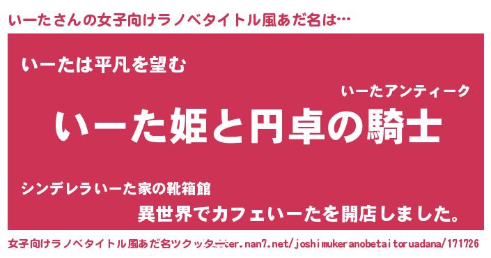 | 男性向けラノベタイトル風あだ名 | 『イータアートオンライン』 |