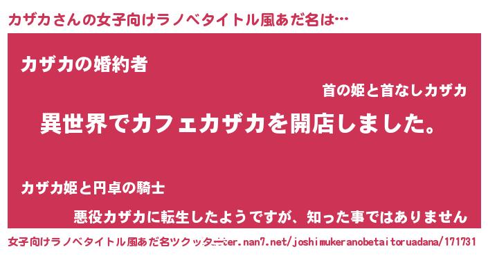 | 男性向けラノベタイトル風あだ名 | 『誰もが恐れるあのカザカが、ぼくの専属メイドになるようです。』 |