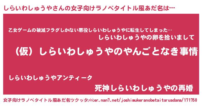 | 胡散臭い通販商品みたいなあだ名 | 『必ず成功する霊験あらたかなお札…その名も「しらいわしゅうや」』 |