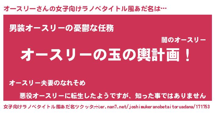 | 胡散臭い通販商品みたいなあだ名 | 『あなたにだけ特別に提供する世界で10本だけ現存している希少なブランデー…その名も「オースリー」』 |