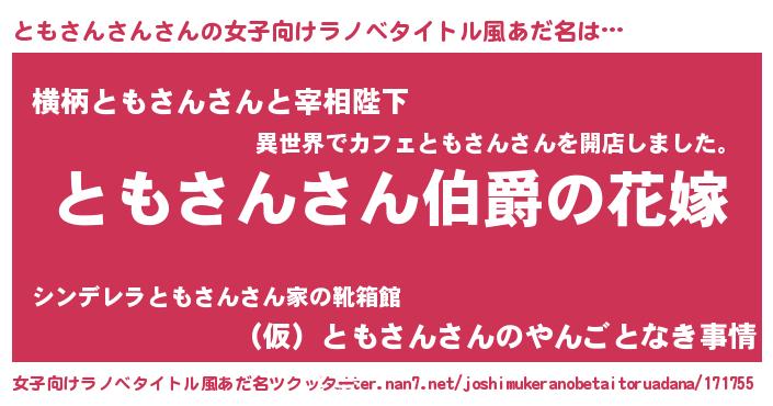 | 男性向けラノベタイトル風あだ名 | 『やはりともさんさんの青春ラブコメはまちがっている 』 |