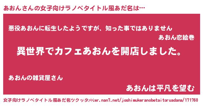| ヘコむあだ名 | 『あおん(笑)』『あおぷりん』『豆乳』 |
