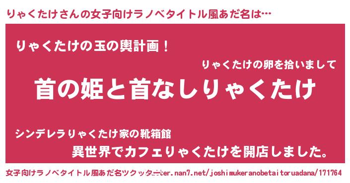 | 男性向けラノベタイトル風あだ名 | 『はたらくりゃくたけさま!』 |
