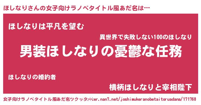 | 胡散臭い通販商品みたいなあだ名 | 『伝統あるペンダント…その名も「ほしなり」』 |
