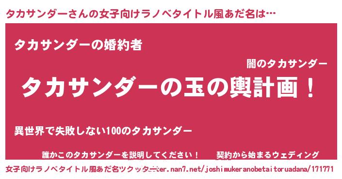 | 胡散臭い通販商品みたいなあだ名 | 『運命の人と巡り会える高級そうな皿…その名も「タカサンダー」』 |