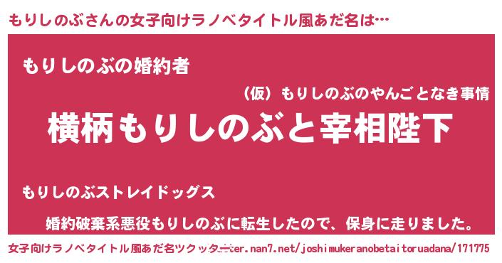 | ファンタジー風あだ名 | 『エターナルモリシノブー』『モリフェル』 |