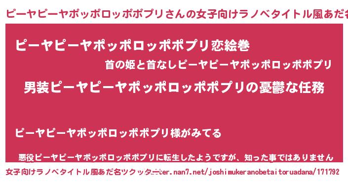 | 男性向けラノベタイトル風あだ名 | 『うちのピーヤピーヤポッポロッポポプリが世界を掌握している!』 |