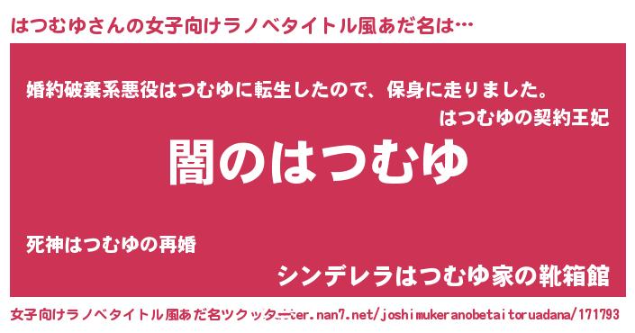 | 男性向けラノベタイトル風あだ名 | 『Re:はつむゆから始める異世界生活』 |